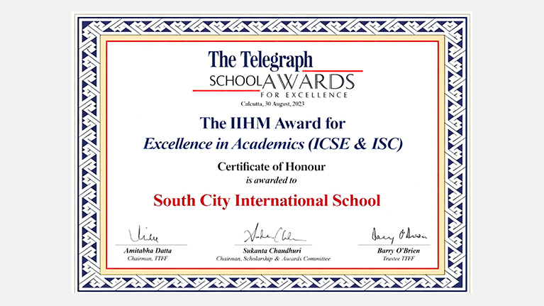 Honoured with the IIHM Award at The Telegraph School Awards for exceptional performance in ICSE & ISC academics.